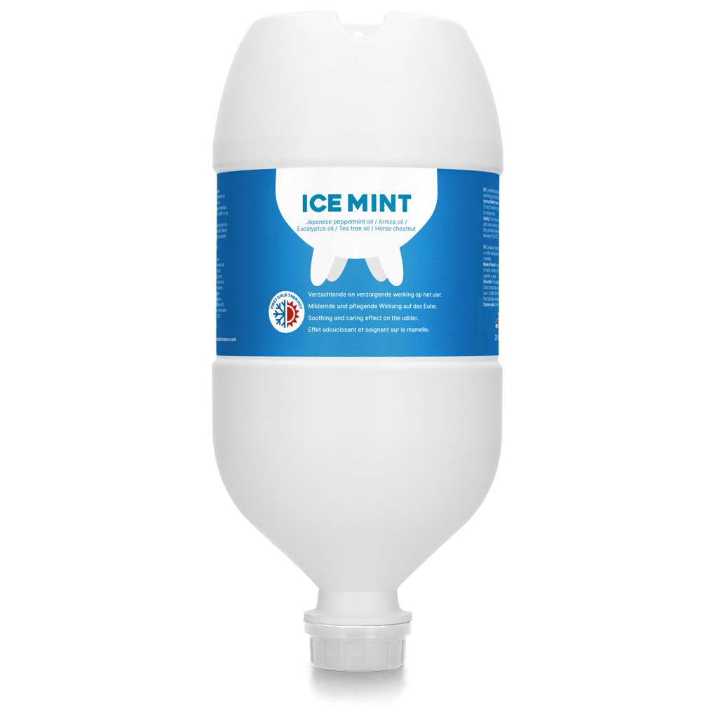 Ice Mint ist 'das blaue Gold' für Euter! Diese Euterminze enthält eine einzigartige Formel mit einer lindernde und pflegende Wirkung für das Euterviertel. Das Gel wird zuerst kalt und dann herrlich warm. Es wurde hergestellt aus natürlichen Bestandteilen so wie Pfefferminzöl und Arnika. Die Flasche ist sehr vielseitig verwendbar da es stehen oder hängen kann und leckt nicht.