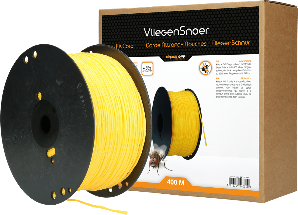 Knock Pest fliegenschnur, ersatzrolle. diese rolle enthält 400 meter fliegenschnur, die dank der gelben farbe bis zu 35% mehr fliegen anzieht. giftfrei.
