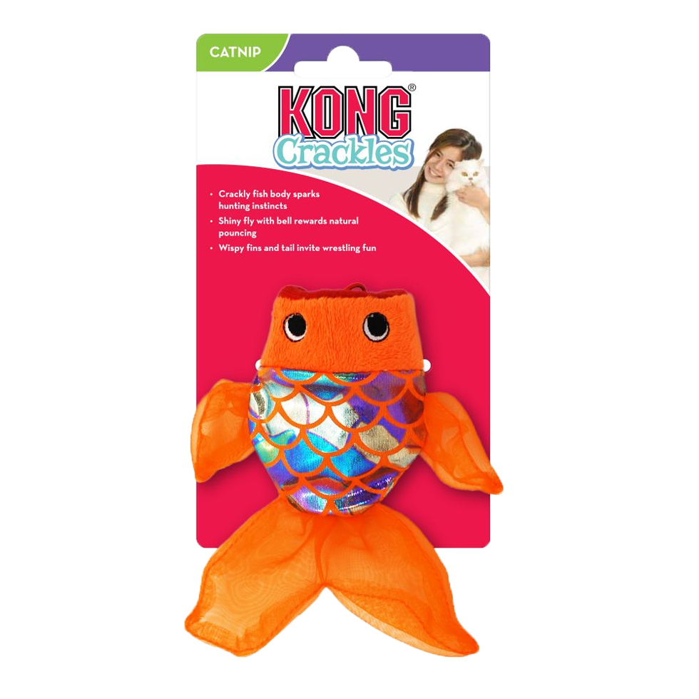 Dieser Fisch mit knisternden Geräuschen und glänzendem Material regt den natürlichen Jagdinstinkt von Katzen an. Die rasselnde Fliege, die mit einem Gummiband am Fisch befestigt ist, macht das Spiel besonders anspruchsvoll. Gefüllt mit Catnip für lang anhaltendes Spielvergnügen.