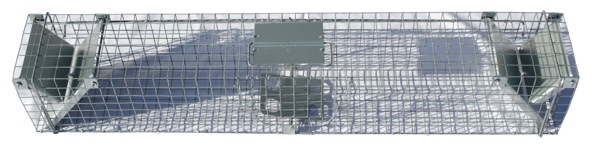 nach dem stellen der falle wird ein tier durch den köder angelockt. um den köder zu bekommen muss das angelockte tier auf die plattform steigen. in diesem moment, wenn die plattform bewegt, werden eisenstifte zueinander abgeschossen und die zwei klappen des käfigs fallen zu. die klappen können durch die anwesenden widerhaken nicht durch das gefangene tier geöffnet werden und ist damit gefangen. die falle ist aus verzinktem stahl.