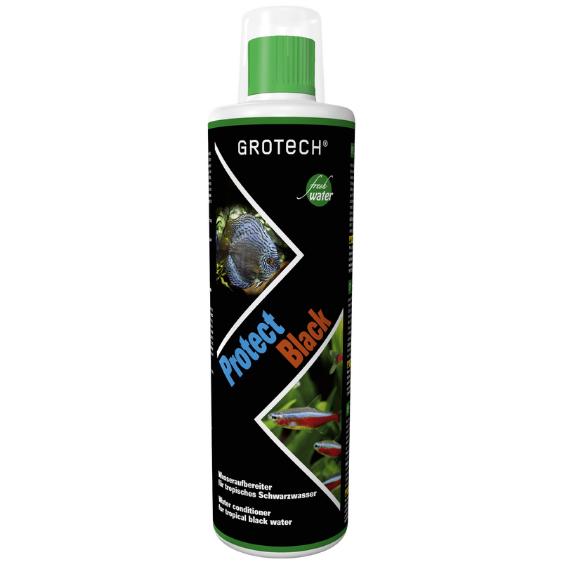Protect Black ist durch den hohen Gehalt an hochwertigen Huminstoffen speziell für Schwarzwasser liebende Fischarten, wie Salmler, Cichliden, Wels usw. geeignet.